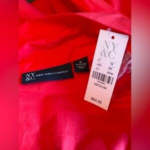 New York & Company Red Tie-Neck Balloon Sleeve Blouse NWT Medium