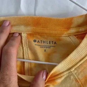Brighten your wardrobe with this orange tie-dye sweater from Athleta. Ideal for casual wear.