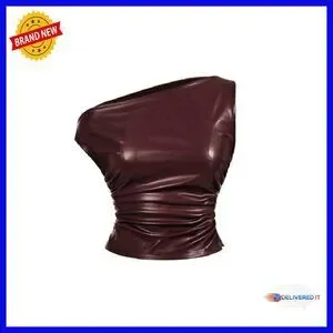 Off Shoulder PU Leather Tank Top Slim Fit Crop Y2K Clubwear