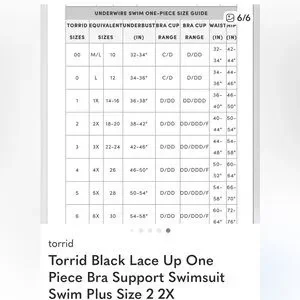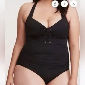 Torrid Size 2 Black Lace Up Wireless One Piece Ruched Bra Support Swimsuit 18/20