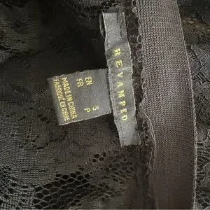 This stunning Revamped black floral lace maxi cardigan offers a sophisticated take on dark romance. Featuring an intricate sheer lace construction, this floor-length duster includes a contrasting solid rib-knit trim along the open front and a matching wide elasticized belt with gold-tone hardware to cinch the waist. The long sleeves are finished with delicate eyelash lace detailing at the cuffs for an added touch of texture. A versatile layering piece that transitions effortlessly from festival wear to an evening statement.