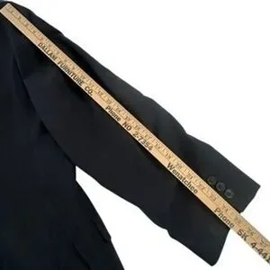 Brooks Brothers stretch blazer offers a sophisticated silhouette in a versatile navy blue hue. This three-button suit coat features a classic notched lapel, multiple interior pockets for organization, and a smooth full lining for comfortable all-day wear. The stretch fabric blend provides enhanced mobility while maintaining a sharp, tailored appearance suitable for office settings or formal events.