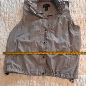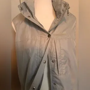 Chic sleeveless vest with button closure. Ideal for layering. All pockets have zipper enclosures. Excellent condition.