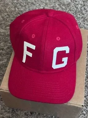 Essentials Fear of God and New Era collaboration cap honoring the Negro Baseball League Kansas City Monarchs. Red with bold white letters. Classic sporty look. Adjustable.