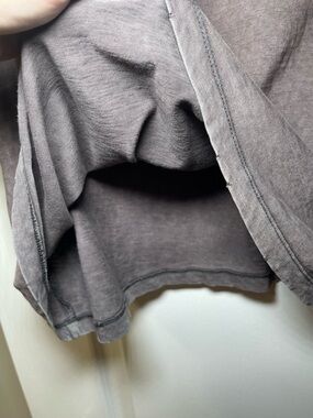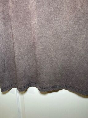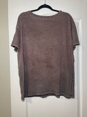 No holes, stains or flaws. Has been worn a few times. The color is more of a mauve brown with a distressed wash to it. This tee is made to look like you lived in it