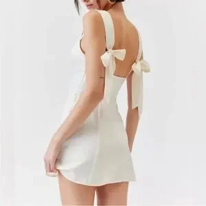 URBAN OUTFITTERS Satin like ivory Tie-Shoulder bows Mini Dress size small