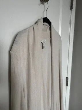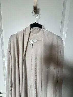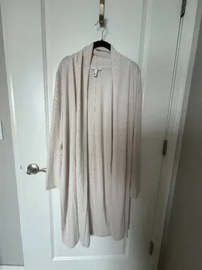 Halston Cream Open Front Long Cardigan Sweater, XL