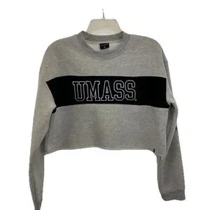 NWOT Hype and Vice UMASS Cropped Sweatshirt Womens Small Gray Black Colorblock