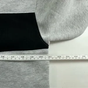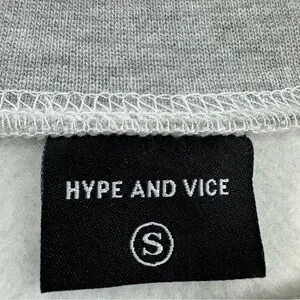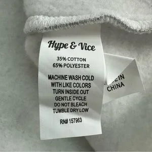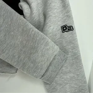 The NWOT Hype and Vice UMASS Cropped Sweatshirt in women's small size features a stylish colorblock design in gray and black. This pullover sweatshirt is ideal for activewear and offers a comfortable fit with long sleeves and a fleece lining for added warmth. The logo accents add a unique touch to this classic sweatshirt, perfect for activities like gym training, walking, travel, or casual wear. Made from a blend of polyester and cotton, this knit fabric sweatshirt is easy to care for and perfect for sports or everyday style.