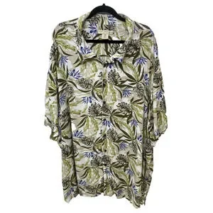 All over Hawaiian print, white light brown green blue floral pattern, men’s big and tall four XL.