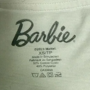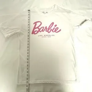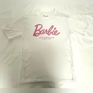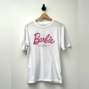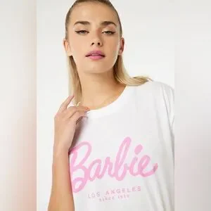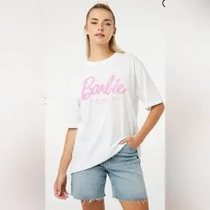 Ardene Oversized Barbie White Tee with Pink Script Logo XS