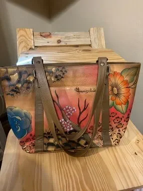 Anuschka Hand-Painted Floral Leather Tote Bag in Multicolor EUC