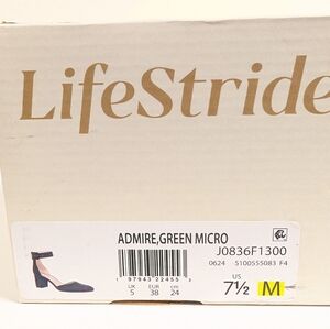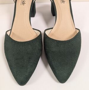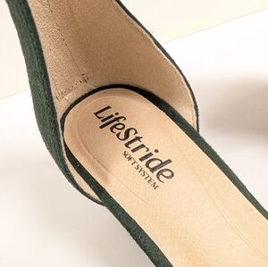 Life Stride Admire Forest Green Suede Ankle Strap Block Heel Pumps Size 7.5M.