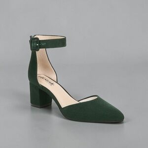 Life Stride Admire Forest Green Suede Ankle Strap Block Heel Pumps