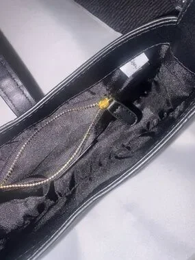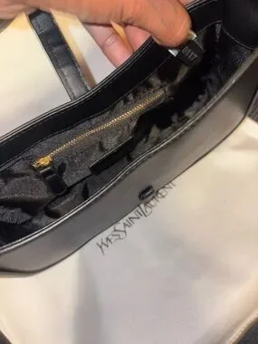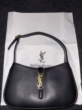 Yves Saint Laurent Black Leather Shoulder Bag with Gold YSL Emblem
