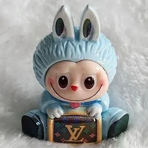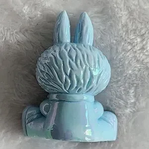 Adorable blue labubu bunny figurine with charming brown and black accents.