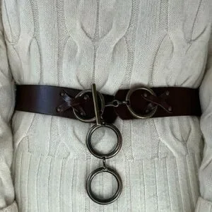 NWOT Preston and York Womens Brown Italian Leather Hippie Waist Belt Sz M