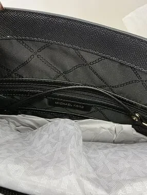 NWT Michael Kors Charlotte Large Top Zip Tote - Black Saffiano with Gold Floral