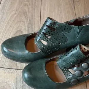 Miz Mooz Dark Green Leather Cutout Mary Jane Heels