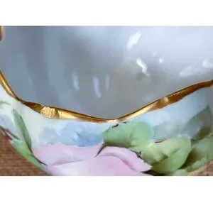 Vintage Hand Painted Floral Pedestal Bowl Candy Dish Planter Gold Trim Elegant