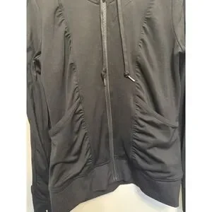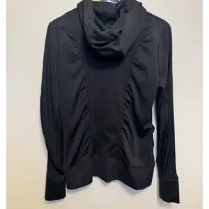 The lightweight, wicking French terry hoodie with sweet ruching details and a length designed to keep you covered after your workout.