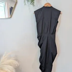 Veronica Beard Black Button-Down Ruched Shirt Dress