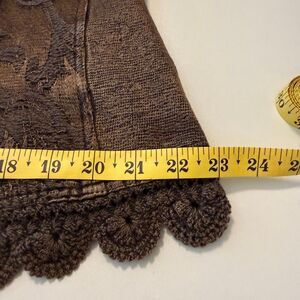 Copper brown Woven fabric with embroidery and copper sequins and crochet trim