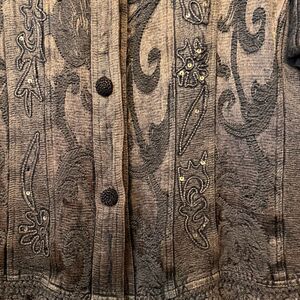 Flashback Jacket Copper Embroidered Sequined Crochet Trim Size XL Western, Goth