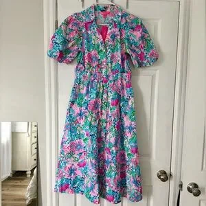 Lilly Pulitzer Pink Tropical Floral Dress with Blue & Green Accents