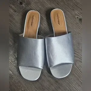 ❤️Comfortview Silver "Capri" Sandals Slides Size 12M Casual Shoes Cruise Slipon