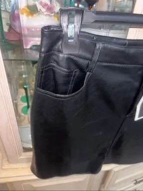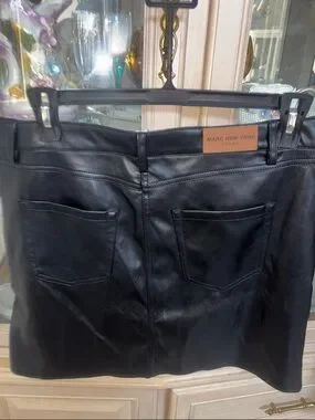 Marc New York Black Faux Leather Skirt with Button Waist