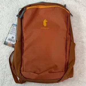 Bold orange backpack by Cotopaxi. Ideal for daily use. Features durable design and ample storage.