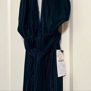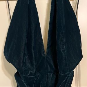 Zara Deep Teal Halter Velvet Jumpsuit