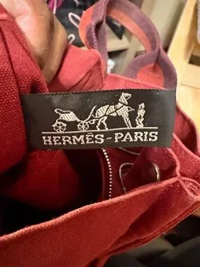 Hermes Fourre Tout PM Red Canvas Tote with Dark Stripe Handles EUC Vintage