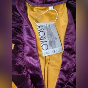 Oyrosy Designer Fashion Party Purple Ruffle Flared Gold Velvet Jumpsuit Sz Small