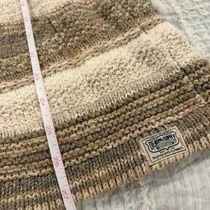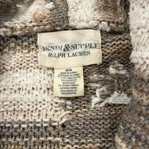 Denim & Supply Ralph Lauren women’s shawl collar cardigan featuring a Stars & Stripes-inspired knit in neutral tan/cream/brown. Size Medium. Button front, textured cotton/linen blend, and a cozy boho/western feel.