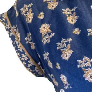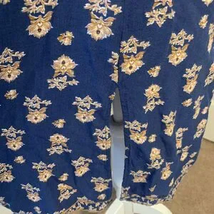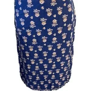 Lucky Brand Floral Midi Dress Button Collar Medium Minimalist Peasant Rayon Tie