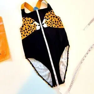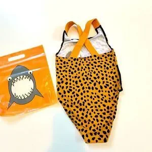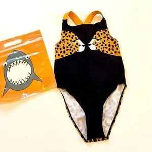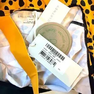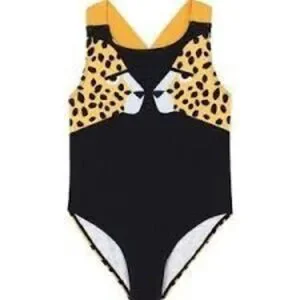 NWT Stella McCartney Kids black and yellow cheetah-print one-piece swimsuit. Si