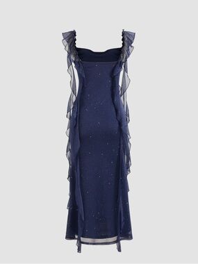 Navy Sparkle Mesh Ruffle Sheath Dress