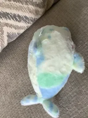 Soft pastel multicolor plush dolphin designed for small pets and gentle play. Lightweight and cuddly for comfort and enrichment. Easy to grip and carry, with a calming pastel color palette.