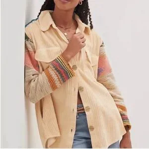 Anthropologie Pilcro Crochet Sleeve Multicolor Button Down Shacket Size M