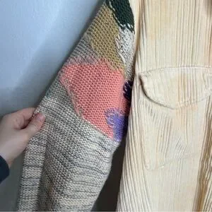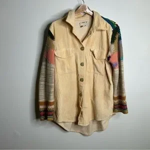 Anthropologie Pilcro Crochet Sleeve Multicolor Button Down Shacket Size Medium