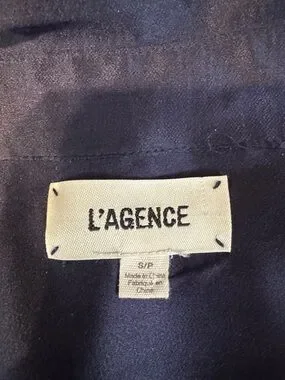 L'AGENCE Navy Satin Button-Down Blouse Size SP