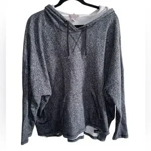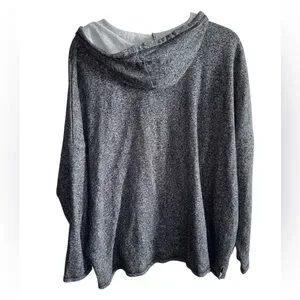 Cozy and lightweight H&M+ hooded pullover sweater in a soft heathered charcoal gray. Features a relaxed fit, drop shoulders, kangaroo pocket, and drawstring hood. Super comfortable and perfect for layering, lounging, or casual everyday wear.