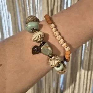 Chic beaded bracelet set featuring turquoise and orange tones. Stackable design that adds a pop of color to everyday looks. Lightweight and comfortable for all-day wear. Includes mixed bead textures for a curated, layered effect.