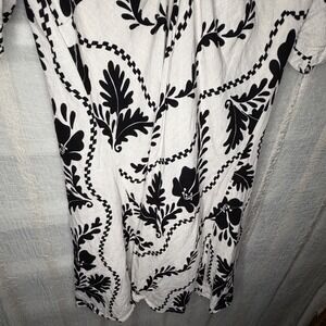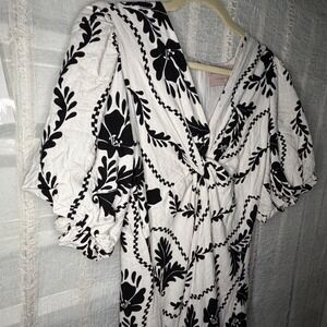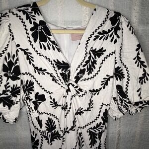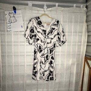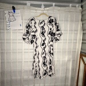 White Closet Elements Mini Dress Women L White Black Linen Blend Puff Sleeve