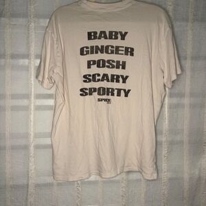 Keywords: 90s, Y2K, Pop Culture, Girl Power, Band Tee, Streetwear, Oversized Fit, Graphic T-Shirt, Retro Style, Nostalgia, Casual, Minimalist, Cream Tee, Music Merchandise, Spice Girls
