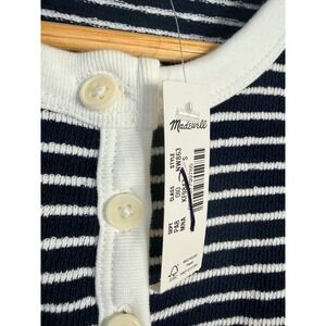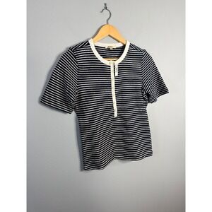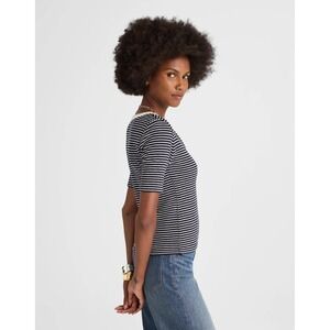 Madewell Striped Elbow-Sleeve Henley Tee Midnight Navy Small NWT