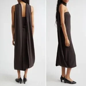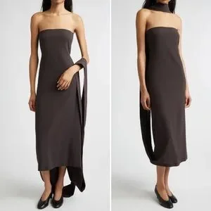 Paloma Wool Alberch Strapless Wool Blend Chocolate Brown Dress w/ Attached Scarf