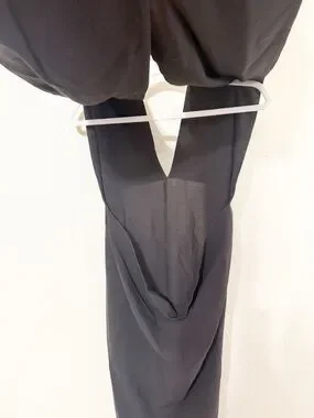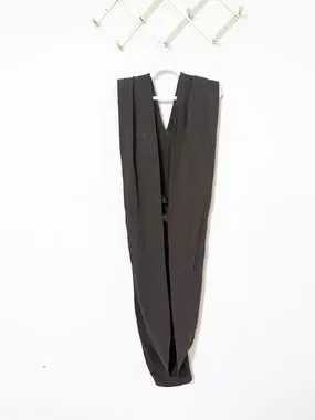 Paloma Lanna contemplates clothing as protection for fall '25, building everyday armor from soft pieces like this runway-featured fitted dress with scarf-like panels at the hem that fold up to create a high neckline.
